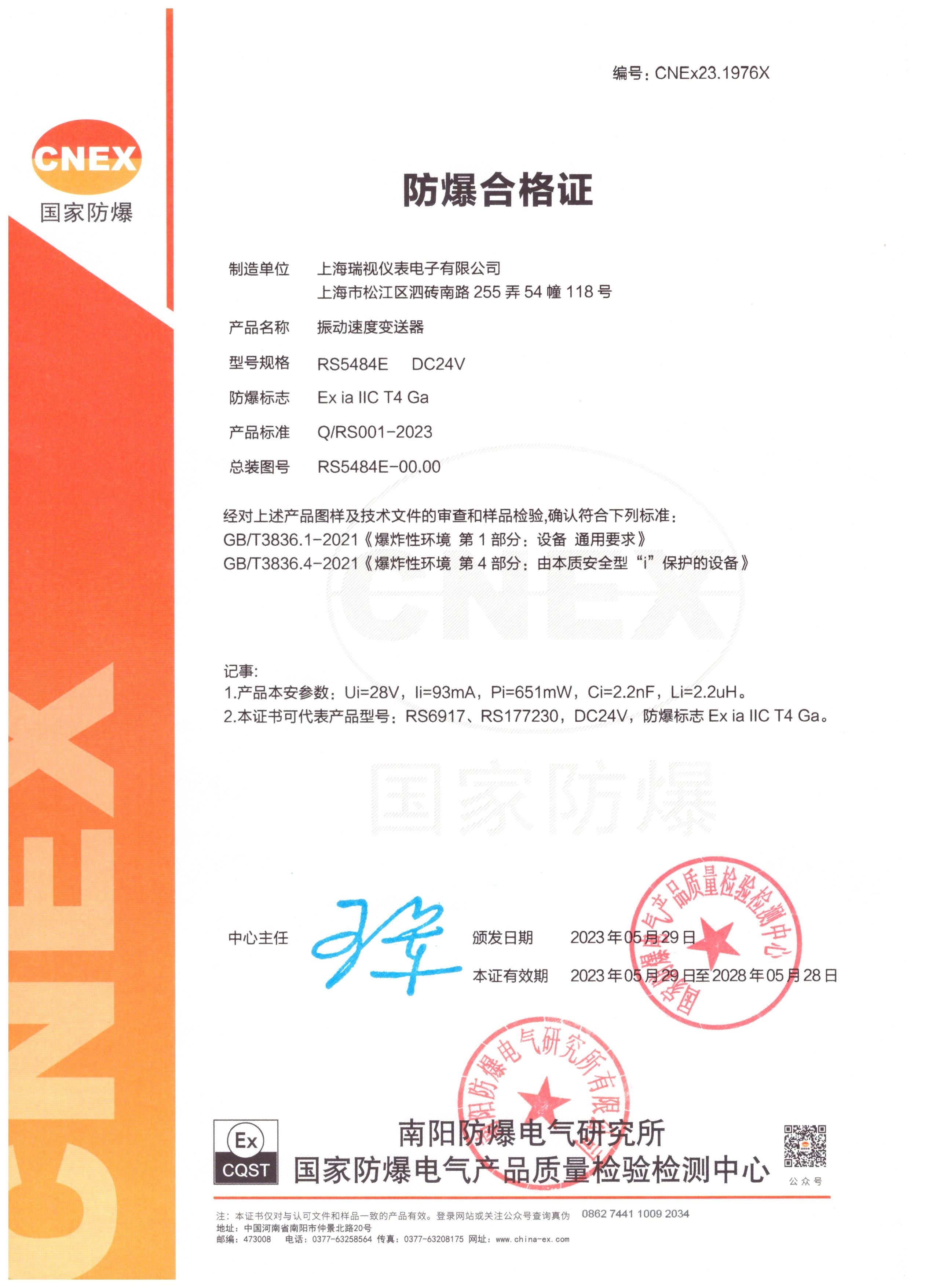 RS5484E/RS6917/RS177230 Explosion Proof Certificate