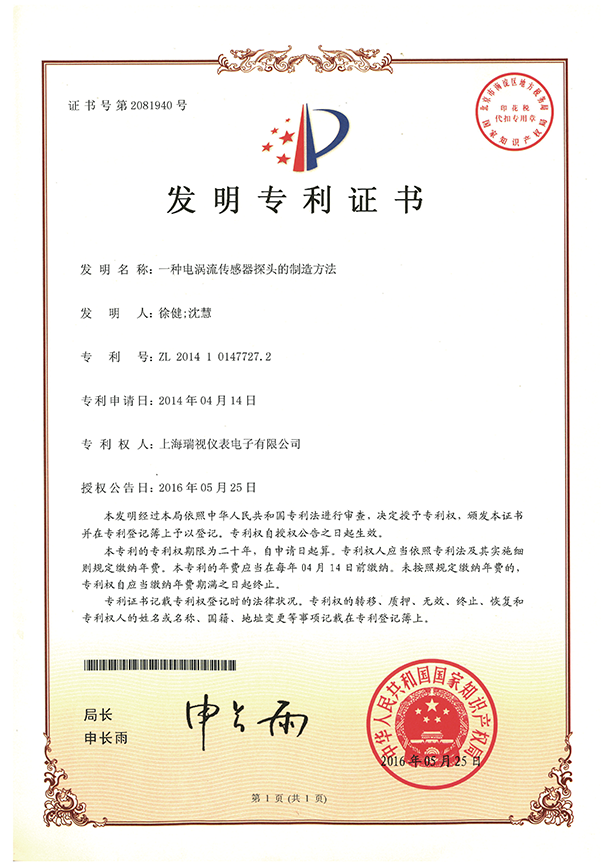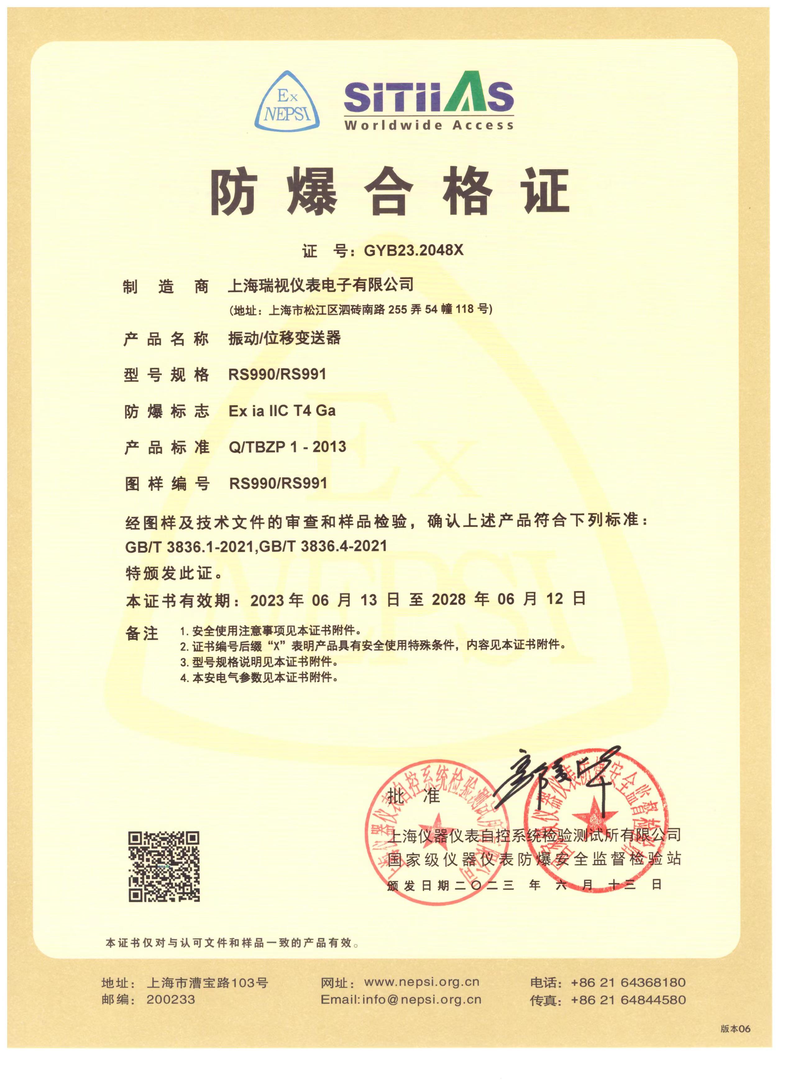 Vibration/Displacement Transmitter Explosion Proof Certificate