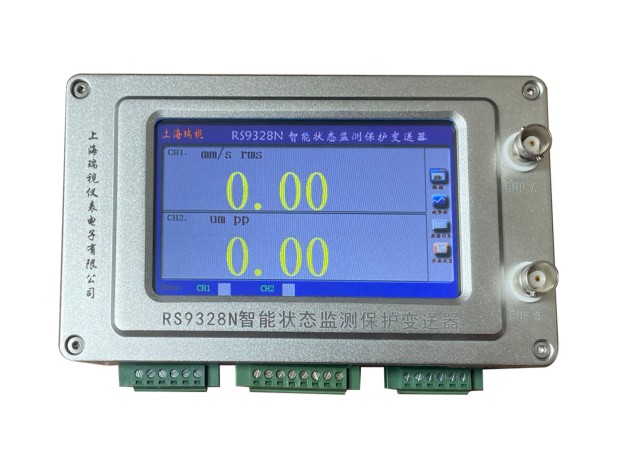 RS9328N雙通道智能狀態(tài)監(jiān)測保護變送器,通過變送器組態(tài)改變參數(shù)實現(xiàn)不同監(jiān)測狀態(tài)的測量功能,能對振動加速度、振動速度(rms,pk)、殼振(絕對振動)、軸振動、軸位移、低頻振動速度、熱膨脹、偏心等狀態(tài)進行監(jiān)測和保護。該狀態(tài)監(jiān)測保護裝置滿足低頻(0.2-30Hz)和中頻(2.5Hz-5kHz)供用戶進行選擇。配接外部鍵相電渦流傳感器時,能實現(xiàn)顯示各通道狀態(tài)監(jiān)測的實時波形、通頻振動幅值、轉速、1X相位,供故障診斷分析使用。